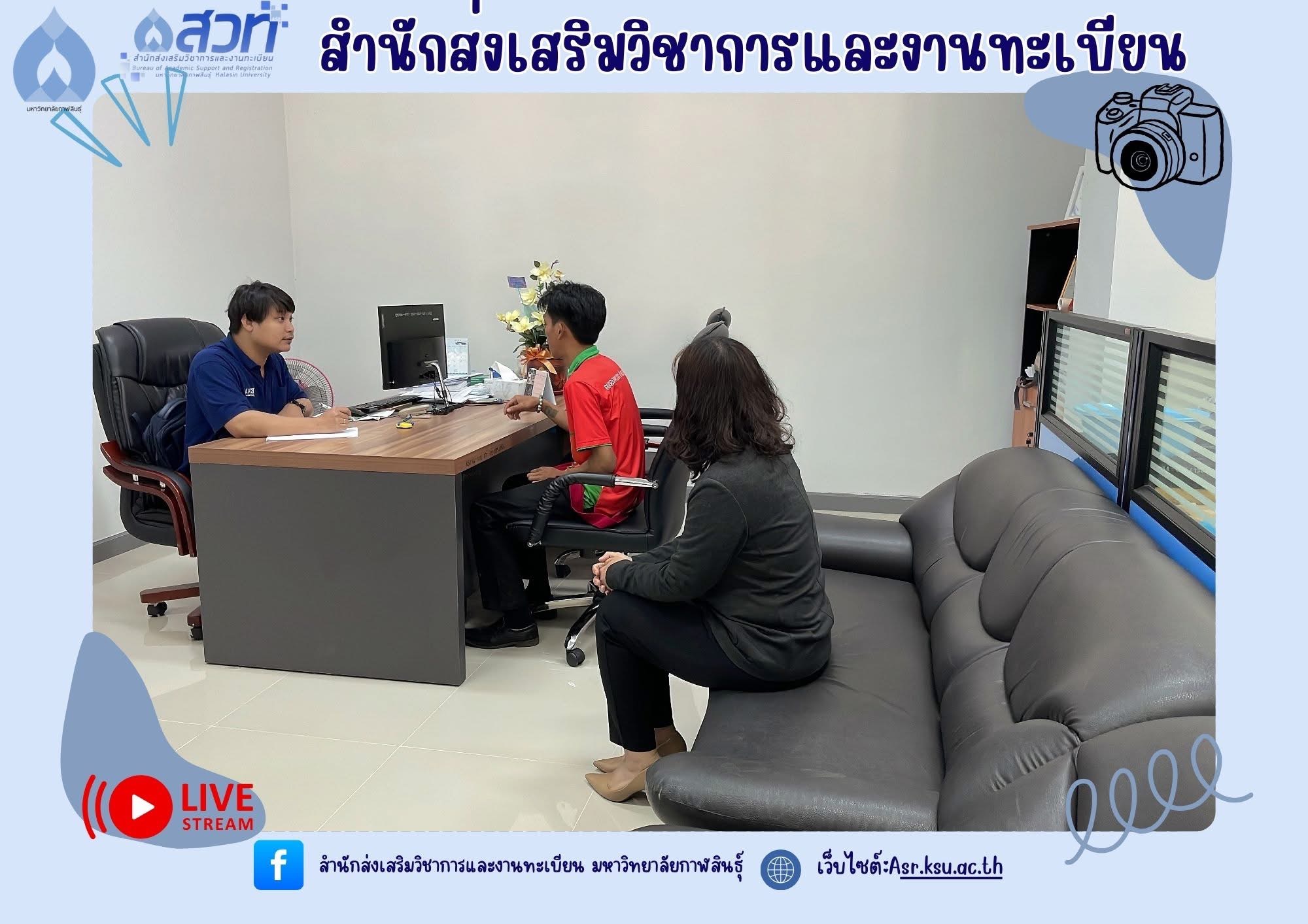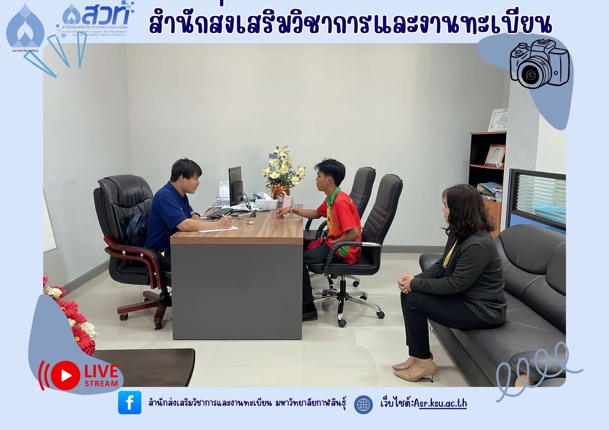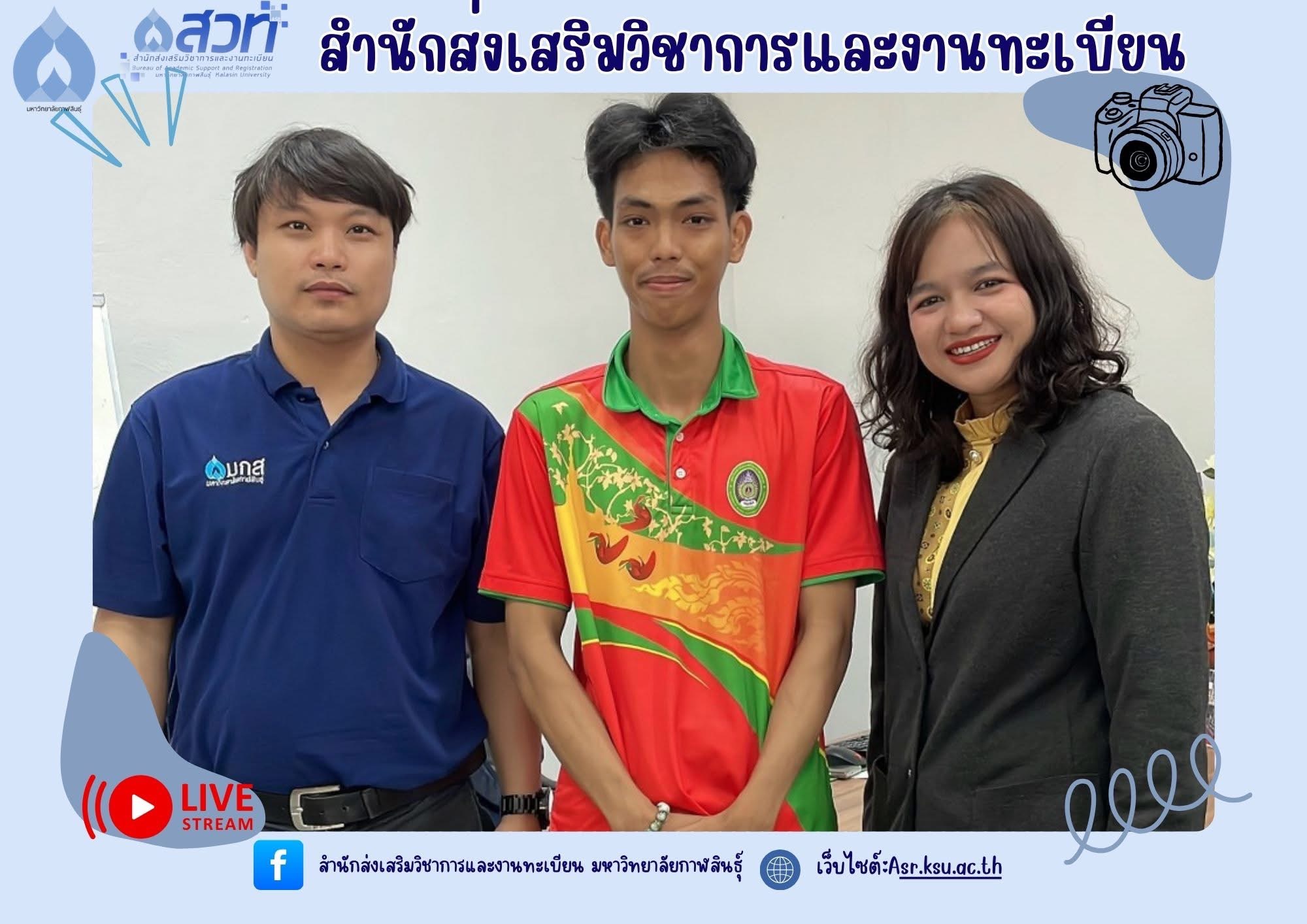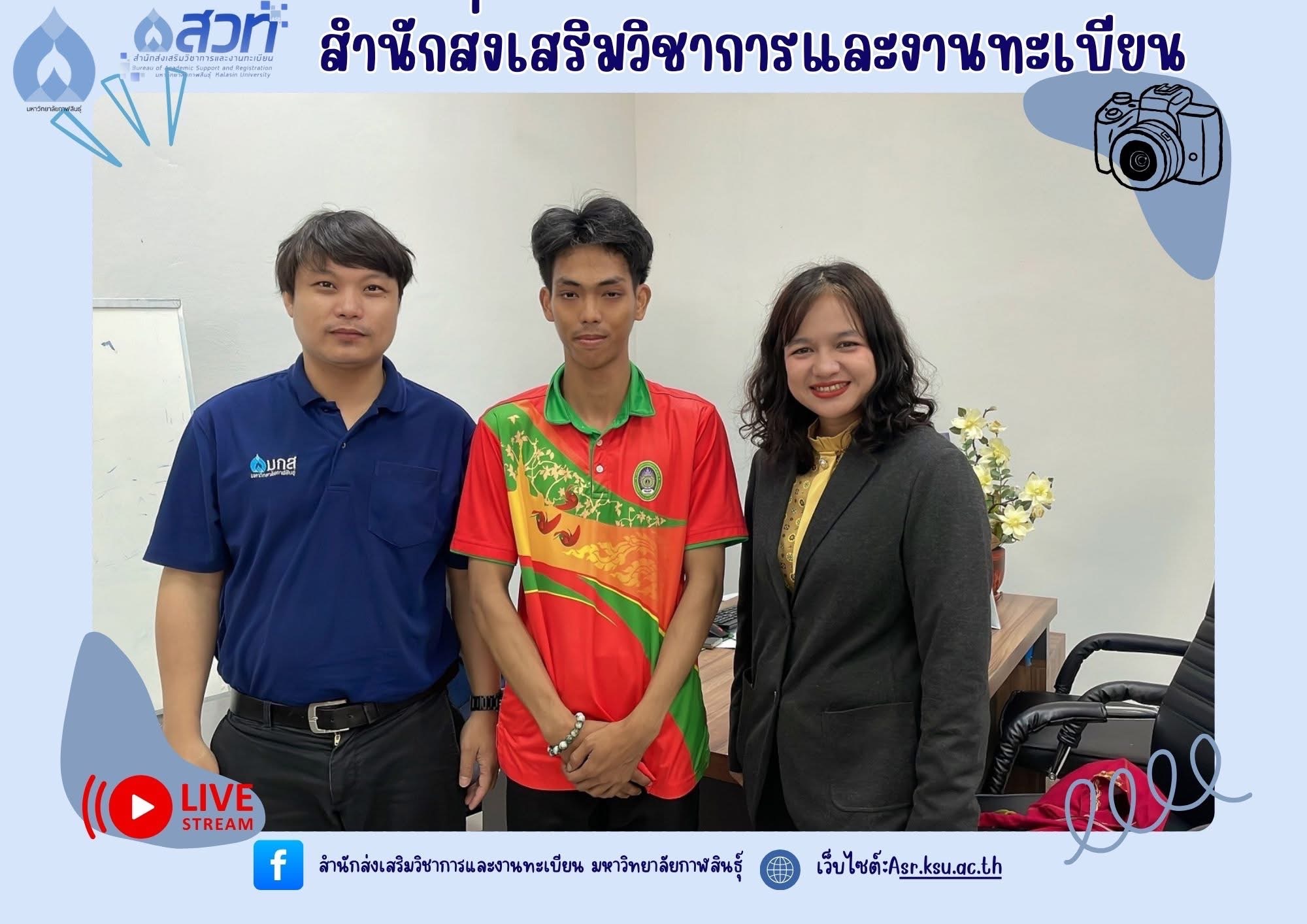วันที่ 14 มีนาคม 2568 นายสุรวิชญ์ ภารสำราญ นักศึกษาระดับปริญญาตรี หลักสูตรศิลปศาสตรบัณฑิต สาขาวิชาบรรณารักษศาสตร์และสารสนเทศศาสตร์ คณะมนุษยศาสตร์และสังคมศาสตร์ มหาวิทยาลัยราชภัฏมหาสารคาม เข้าฝึกประสบการณ์วิชาชีพด้าน บรรณารักษ์ ที่งานวิทยบริการและเทคโนโลยีการศึกษา สำนักส่งเสริมวิชาการและงานทะเบียน มหาวิทยาลัยกาฬสินธุ์ ได้เข้าพบผู้ช่วยศาสตราจารย์นพคุณ ทองมวล ผู้อำนวยการสำนักส่งเสริมวิชาการและงานทะเบียน เพื่อขอรับนโยบายและแนวทางในการเข้าฝึกประสบการณ์วิชาชีพในครั้งนี้