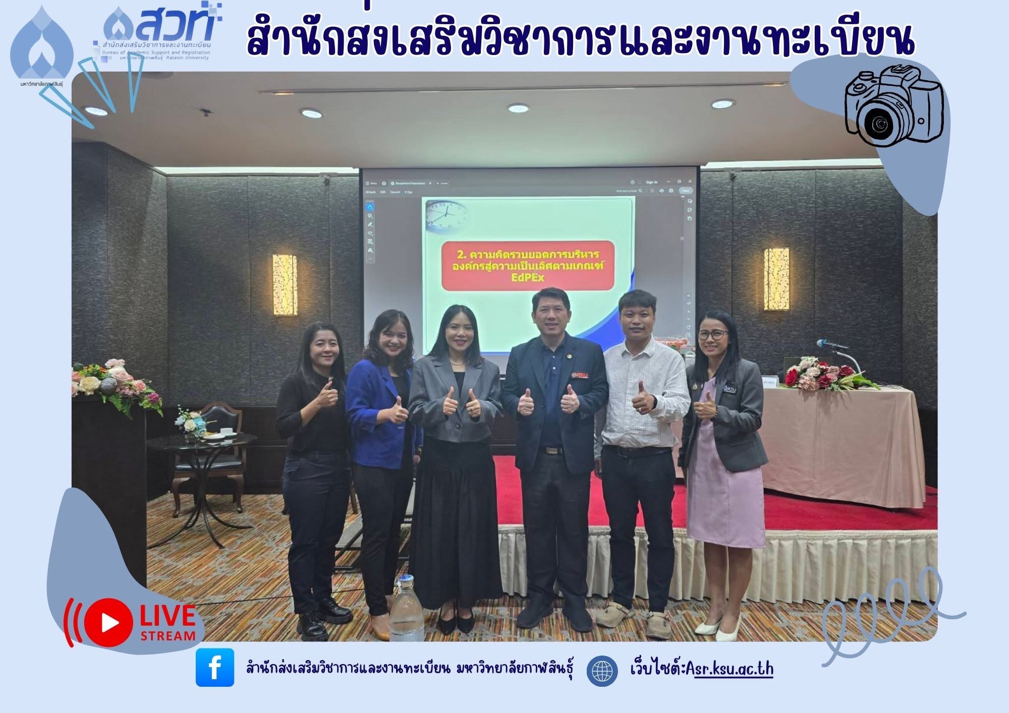 ระหว่างวันที่ 21-22 เมษายน 2568 ผู้ช่วยศาสตราจารย์นพคุณ ทองมวล ผู้อำนวยการสำนักส่งเสริมวิชาการและงานทะเบียน พร้อมด้วย ผู้ช่วยศาสตราจารย์สุชาดา สุรางค์กุล รองผู้อำนวยการสพนักส่งเสริมวิชาการและงานทะเบียน เข้าร่วมรอบรมหลักสูตรเทคนิคและเคล็ดลับการนำองค์กรมุ่งสู่ “EdPEx 300” รุ่นที่ 6 ณ โรงแรมเซ็น จูรี่ปาร์ค เขตราชเทวี กรุงเทพมหานคร