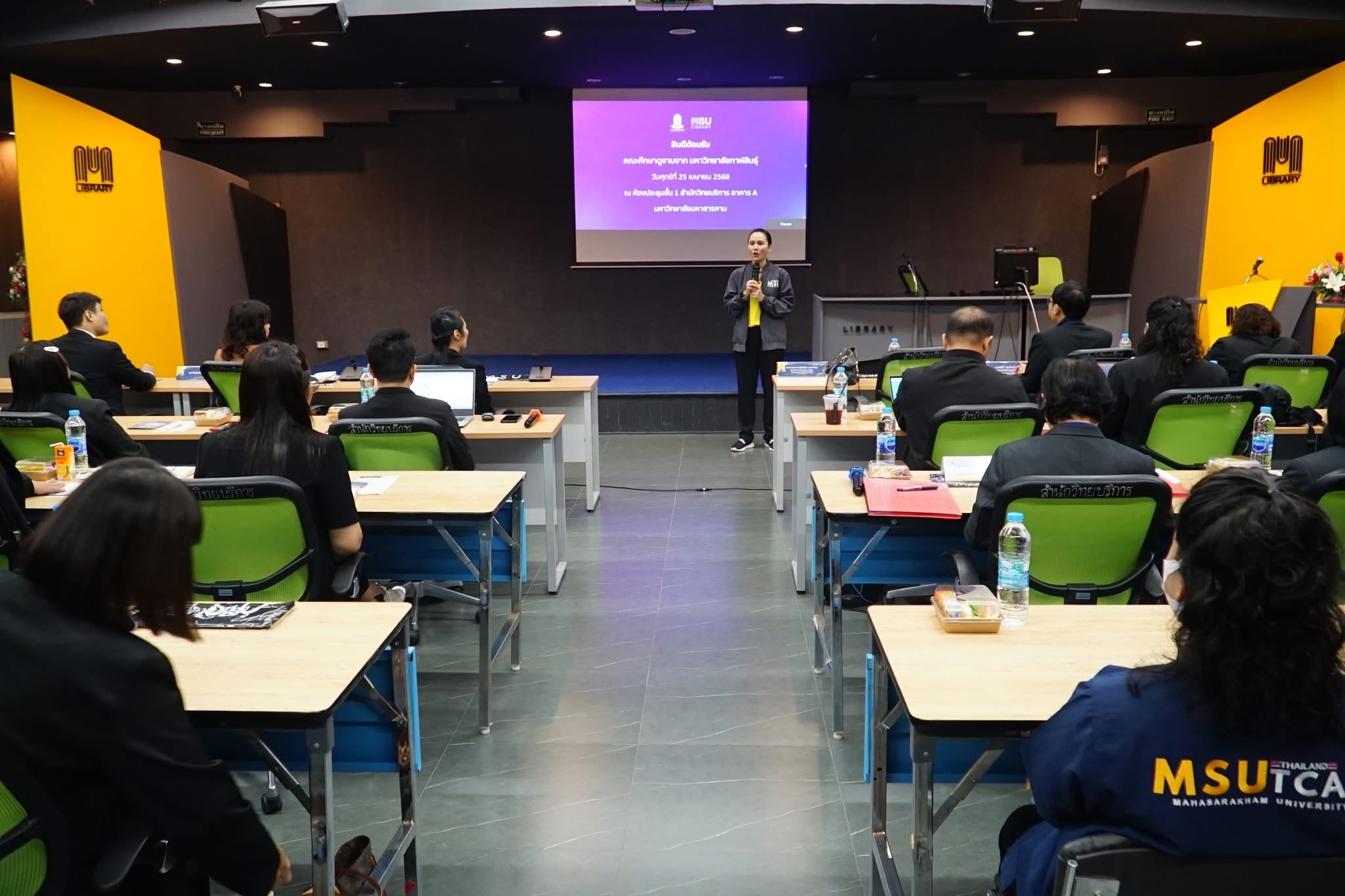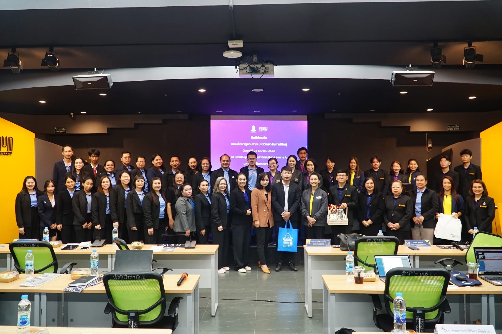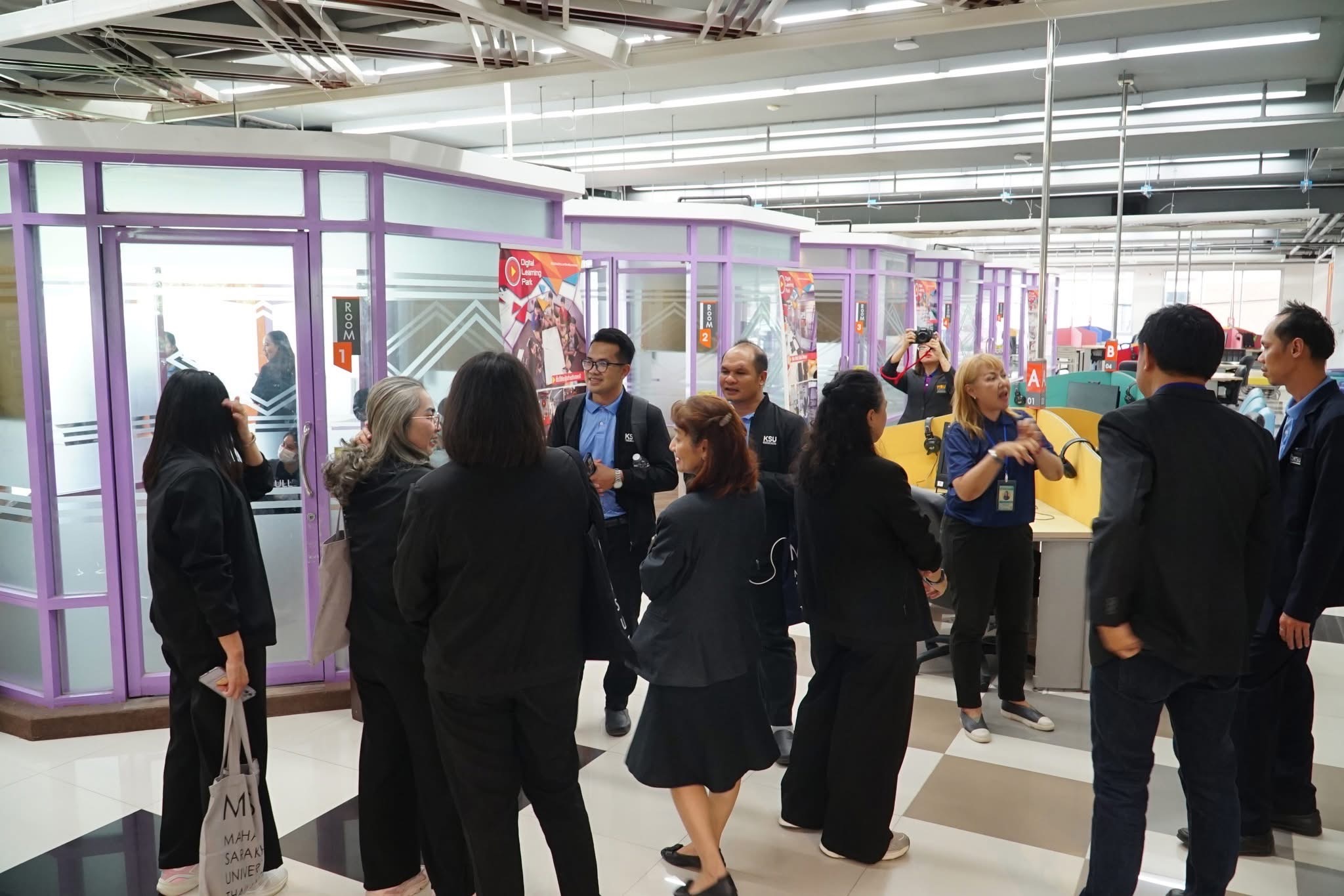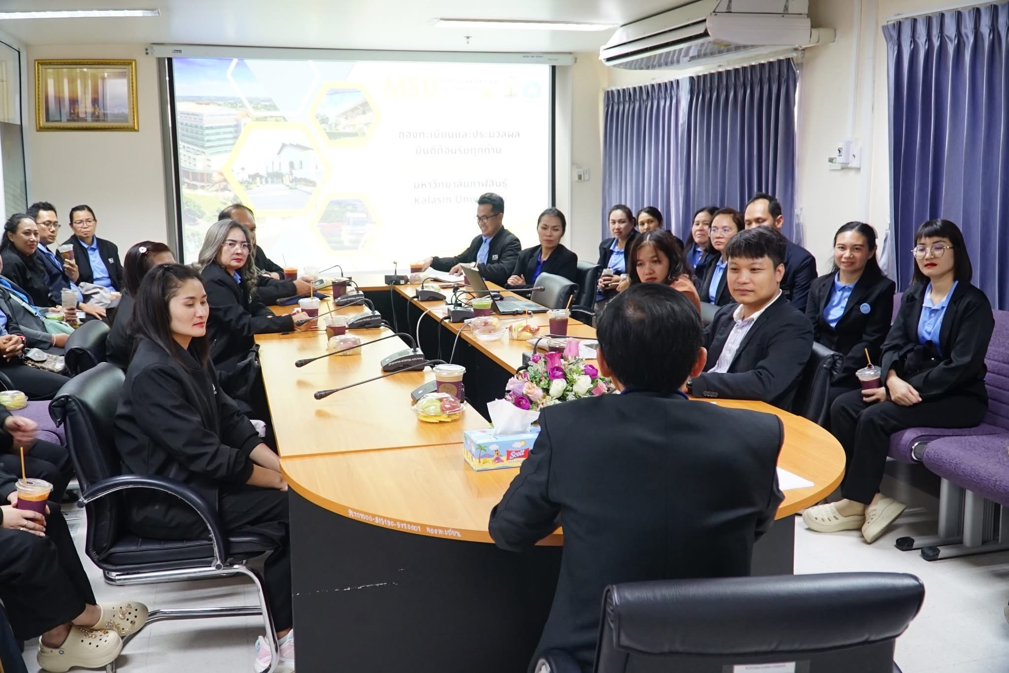 วันที่ 25 เมษายน 2568 ผู้ช่วยศาสตราจารย์นพคุณ ทองมวล ผู้อำนวยการสำนักส่งเสริมวิชาการและงานทะเบียน มหาวิทยาลัยกาฬสินธุ์ พร้อมผู้บริหารและบุคลากร จำนวน 29 คน ได้ศึกษาดูงาน ณ กองทะเบียนและประมวลผล กองบริการการศึกษา และสำนักวิทยบริการ มหาวิทยาลัยมหาสารคาม ในโครงการพัฒนาศักยภาพบุคลากรและศึกษาดูงาน ในการศึกษาดูงานครั้งนี้ได้รับเกียรติจาก รองศาสตราจารย์คัทลียา เมฆจรัสกุล ผู้ช่วยอธิการบดีฝ่ายพัฒนาหลักสูตรและส่งเสริมการเรียนรู้ตลอดชีวิต กล่าวต้อนรับบุคลากรจากสำนักส่งเสริมวิชาการและงานทะเบียน