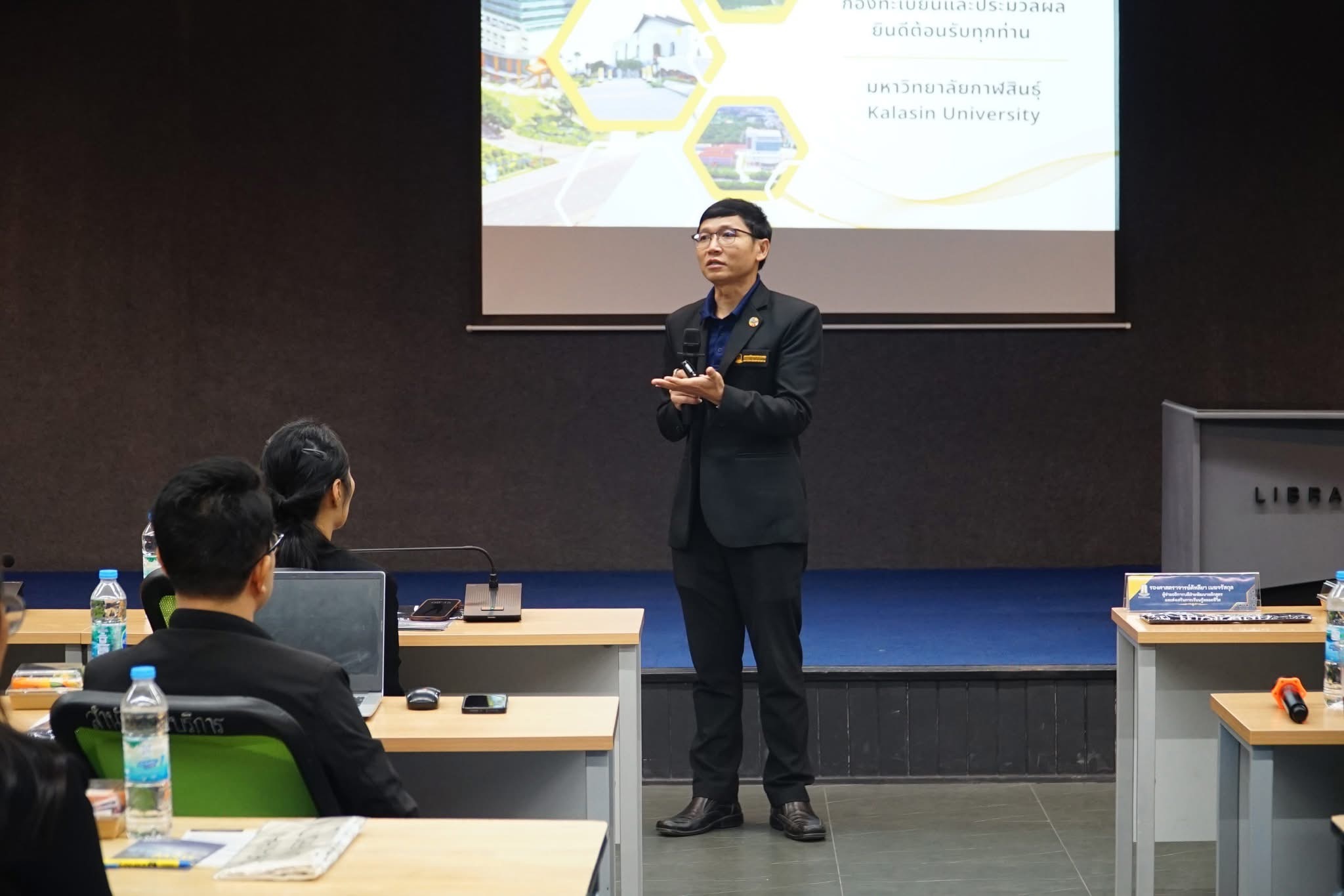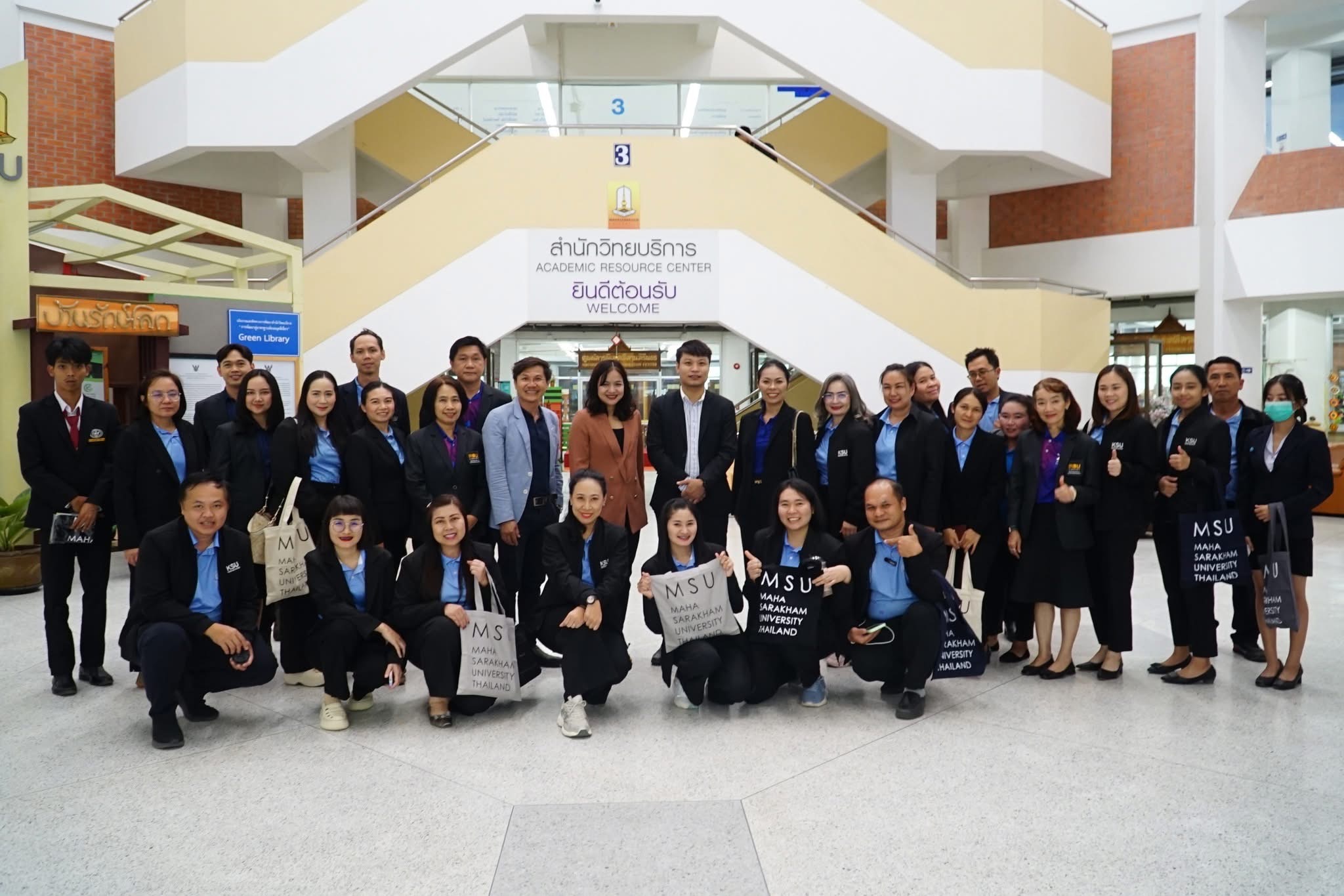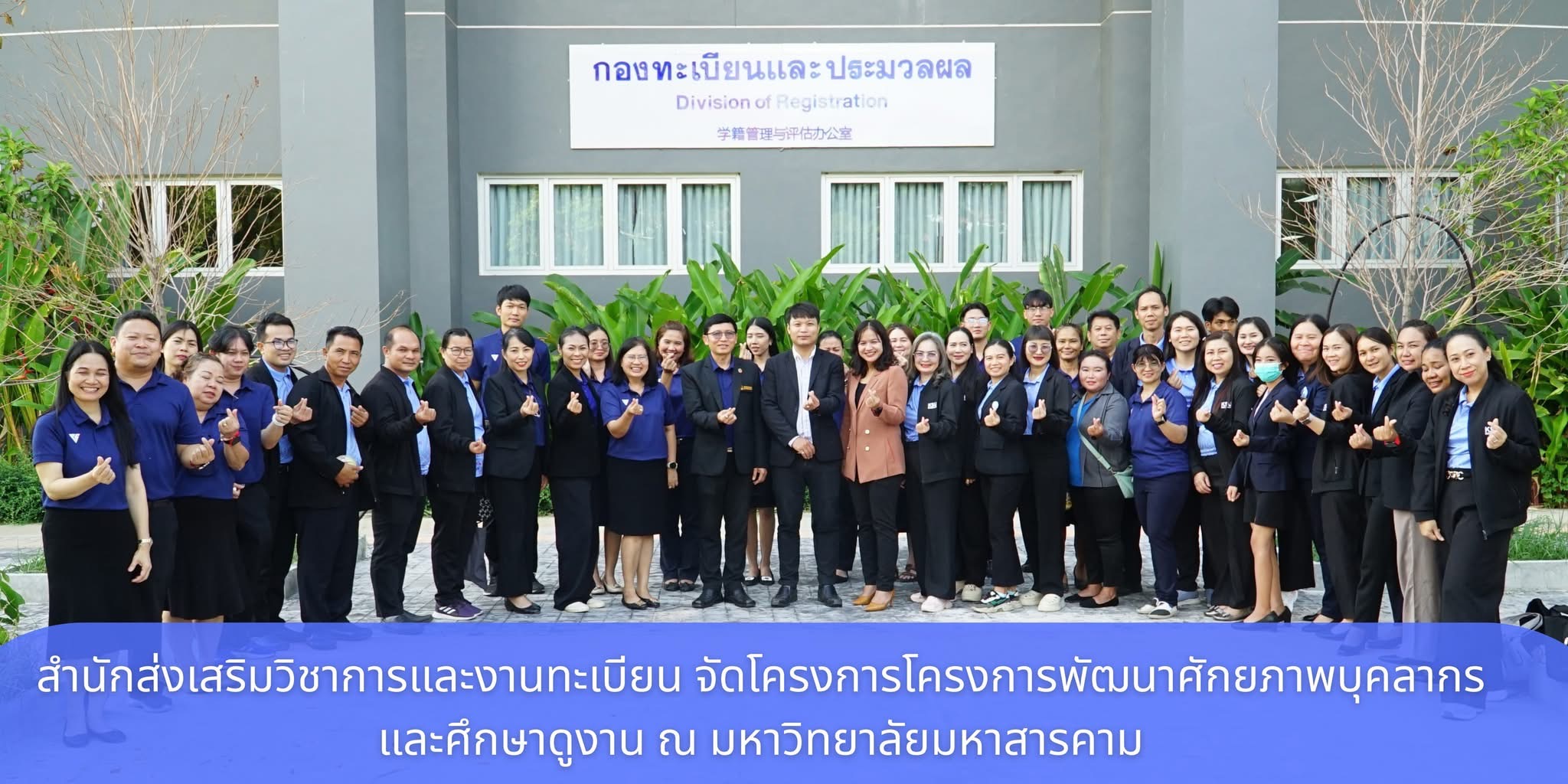 วันที่ 25 เมษายน 2568 ผู้ช่วยศาสตราจารย์นพคุณ ทองมวล ผู้อำนวยการสำนักส่งเสริมวิชาการและงานทะเบียน มหาวิทยาลัยกาฬสินธุ์ พร้อมผู้บริหารและบุคลากร จำนวน 29 คน ได้ศึกษาดูงาน ณ กองทะเบียนและประมวลผล กองบริการการศึกษา และสำนักวิทยบริการ มหาวิทยาลัยมหาสารคาม ในโครงการพัฒนาศักยภาพบุคลากรและศึกษาดูงาน ในการศึกษาดูงานครั้งนี้ได้รับเกียรติจาก รองศาสตราจารย์คัทลียา เมฆจรัสกุล ผู้ช่วยอธิการบดีฝ่ายพัฒนาหลักสูตรและส่งเสริมการเรียนรู้ตลอดชีวิต กล่าวต้อนรับบุคลากรจากสำนักส่งเสริมวิชาการและงานทะเบียน