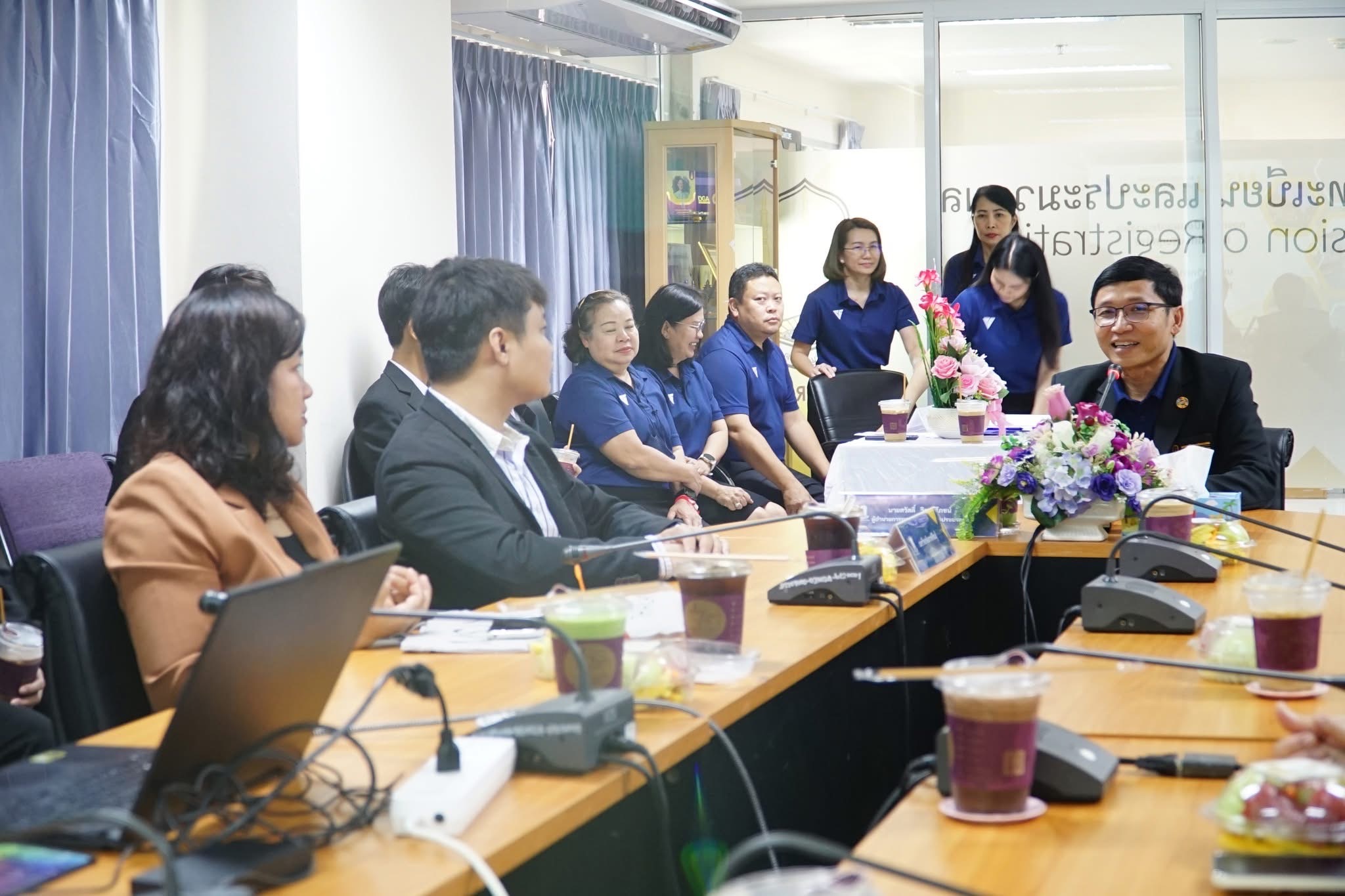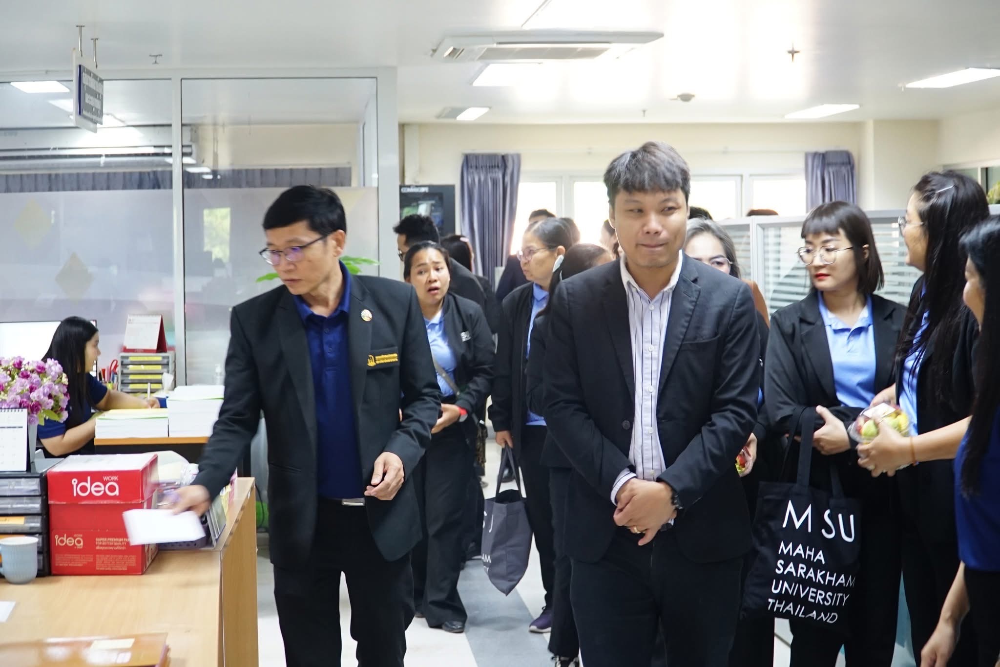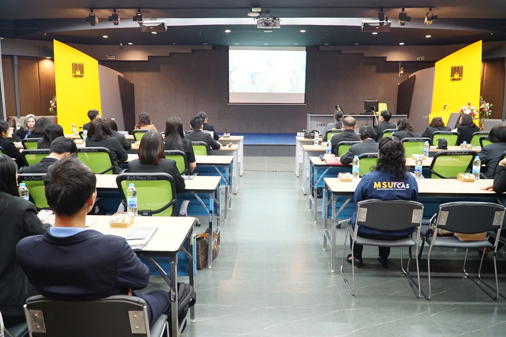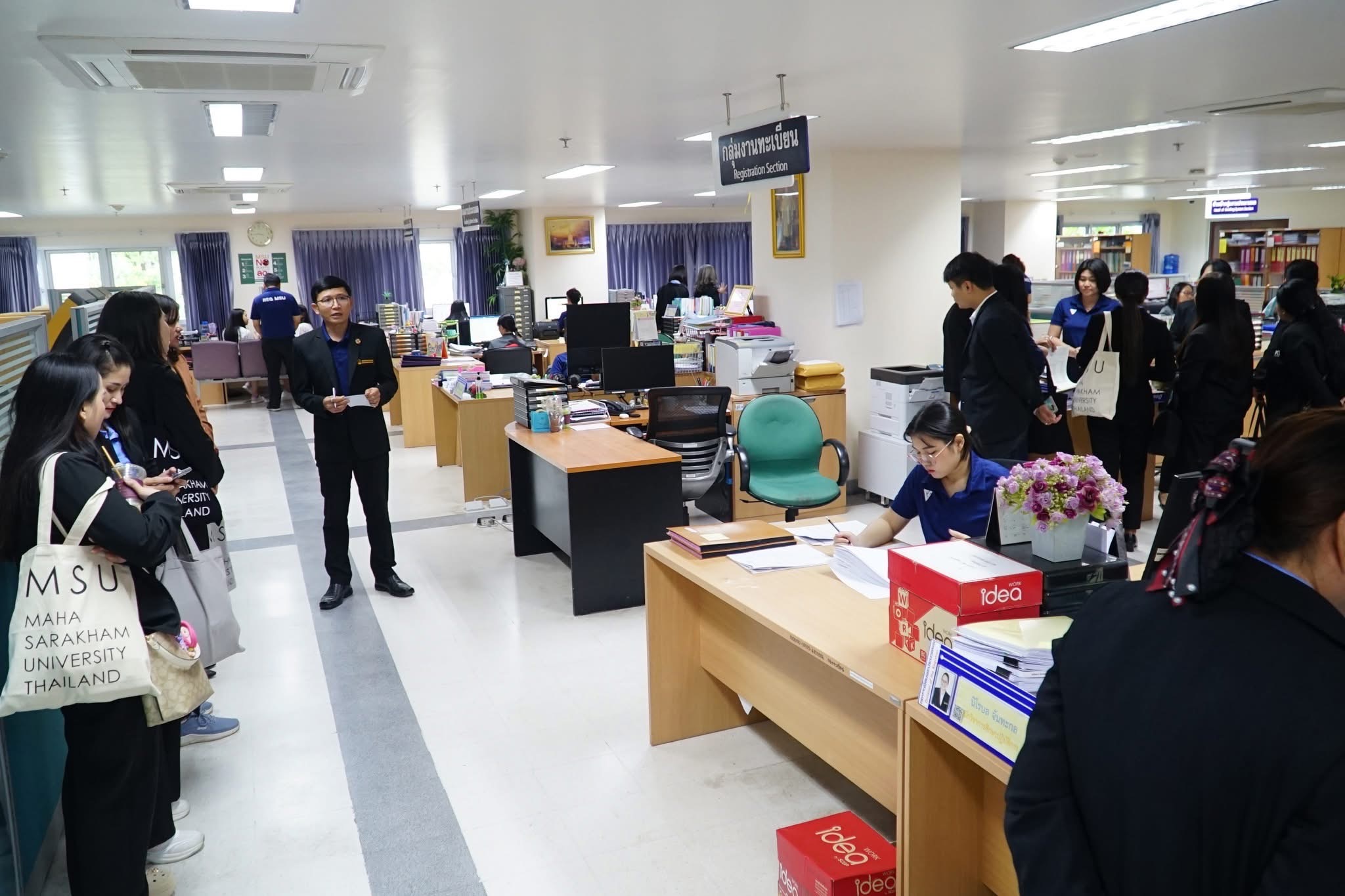 วันที่ 25 เมษายน 2568 ผู้ช่วยศาสตราจารย์นพคุณ ทองมวล ผู้อำนวยการสำนักส่งเสริมวิชาการและงานทะเบียน มหาวิทยาลัยกาฬสินธุ์ พร้อมผู้บริหารและบุคลากร จำนวน 29 คน ได้ศึกษาดูงาน ณ กองทะเบียนและประมวลผล กองบริการการศึกษา และสำนักวิทยบริการ มหาวิทยาลัยมหาสารคาม ในโครงการพัฒนาศักยภาพบุคลากรและศึกษาดูงาน ในการศึกษาดูงานครั้งนี้ได้รับเกียรติจาก รองศาสตราจารย์คัทลียา เมฆจรัสกุล ผู้ช่วยอธิการบดีฝ่ายพัฒนาหลักสูตรและส่งเสริมการเรียนรู้ตลอดชีวิต กล่าวต้อนรับบุคลากรจากสำนักส่งเสริมวิชาการและงานทะเบียน
