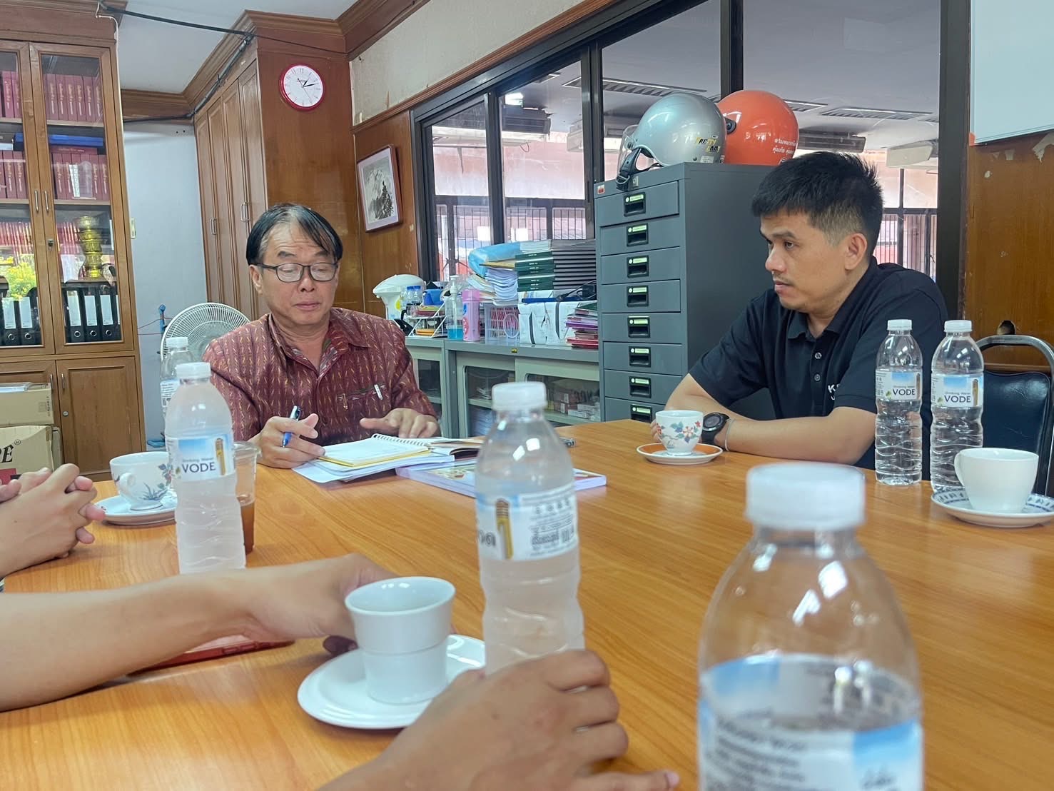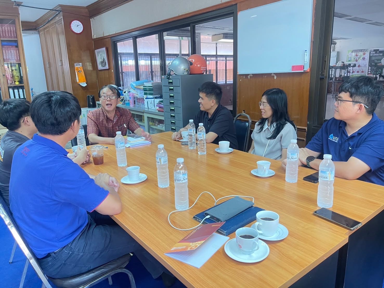 วันที่ 1 พฤษภาคม 2568 ผศ.ดร.วรพจน์ สมมูล รองผู้อำนวยการสำนักส่งเสริมวิชาการและงานทะเบียน พร้อมด้วยคณาจารย์สาขาวิชาวิศวกรรมคอมพิวเตอร์ คณะวิศวกรรมศาสตร์และเทคโนโลยีอุตสาหกรรม และเจ้าหน้าที่งานรับเข้านักศึกษา เข้าพบนายกรณ์ จันทรโสภณ รองผู้อำนวยการวิทยาลัยเทคนิคกาฬสินธุ์ เพื่อหารือถึงความร่วมมือในการส่งเสริมความสามารถด้านเทคโนโลยีของบุคลากร และความร่วมมือด้านการศึกษาในอนาคต