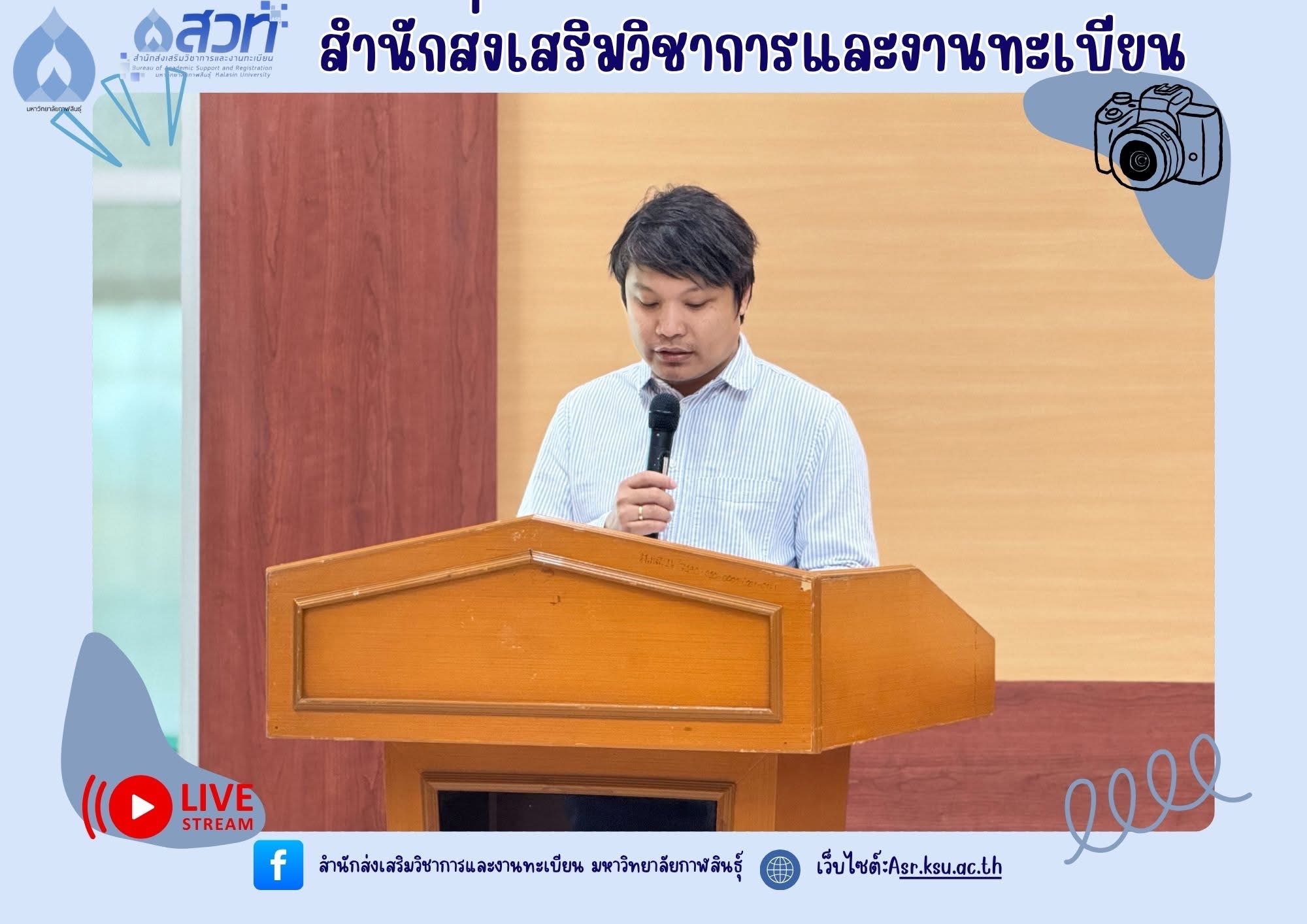 วันที่ 30 มิถุนายน 2568 งานส่งเสริมมาตรฐานหลักสูตรและฝึกประสบการณ์วิชาชีพ สำนักส่งเสริมวิชาการและงานทะเบียน มหาวิทยาลัยกาฬสินธุ์