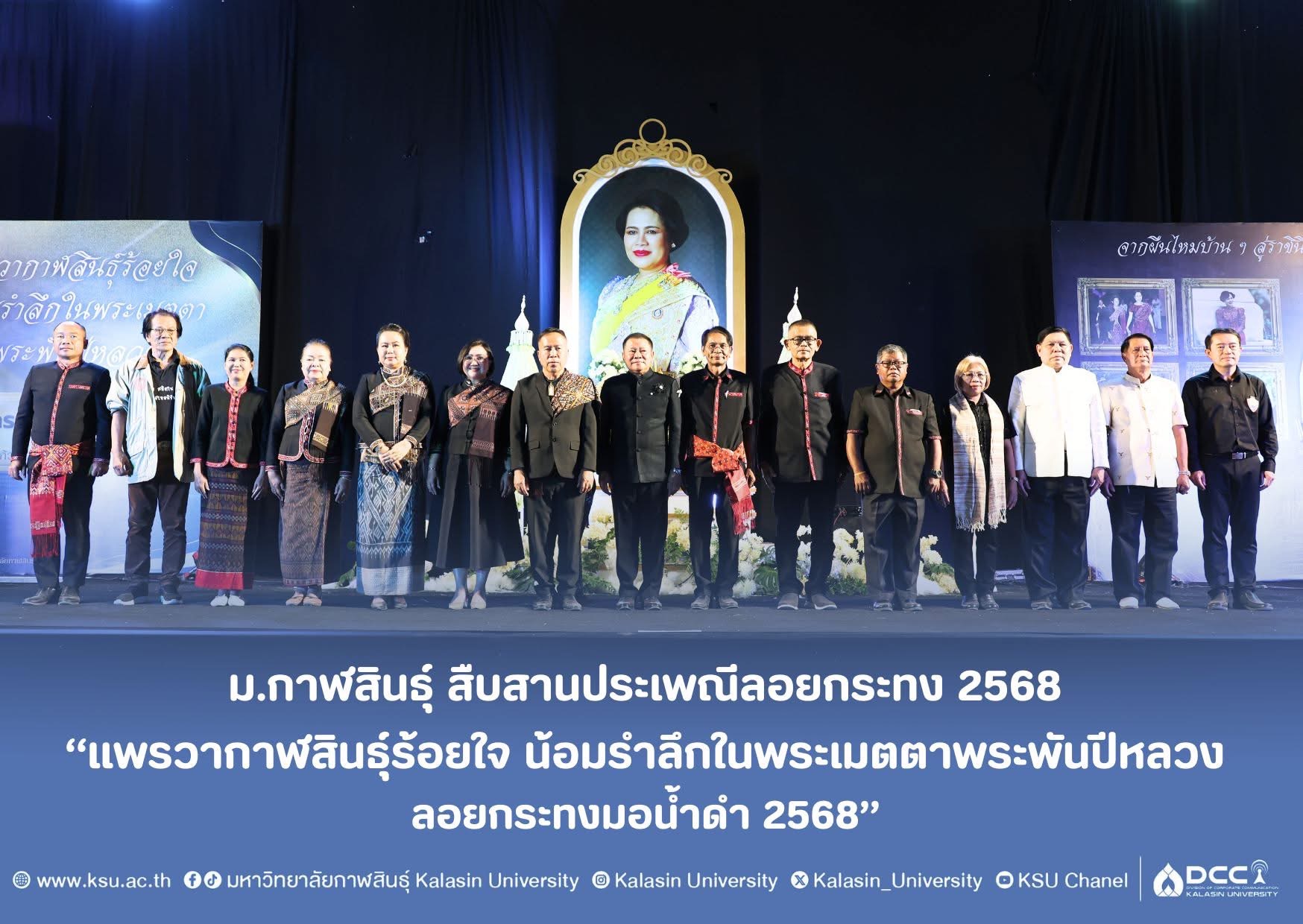 “แพรวากาฬสินธุ์ร้อยใจ น้อมรำลึกในพระเมตตาพระพันปีหลวง ลอยกระทงมอน้ำดำ 2568”