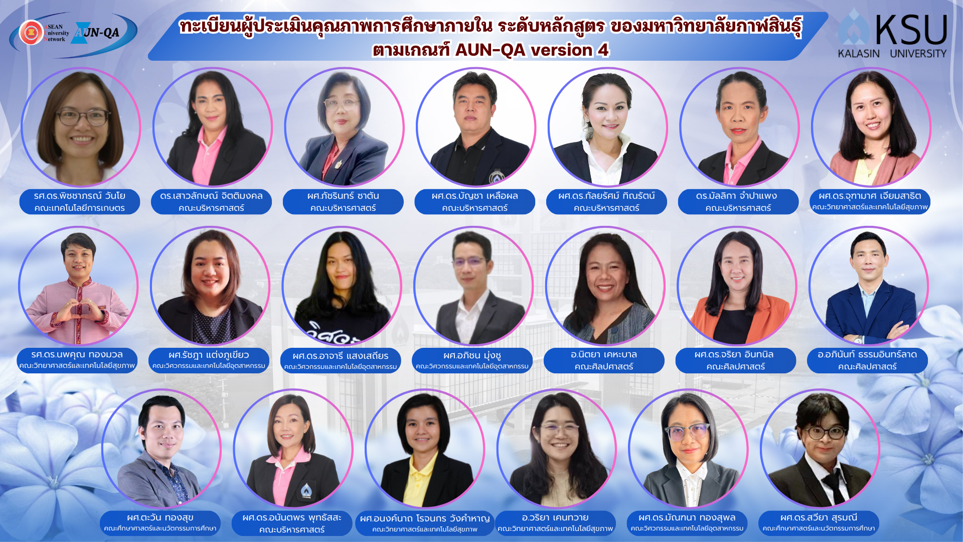 ทะเบียนผู้ประเมินฯระดับหลักสูตร ของ ทปอ. และของมหาวิทยาลัยกาฬสินธุ์ ตามเกณฑ์ AUN-QA version 4